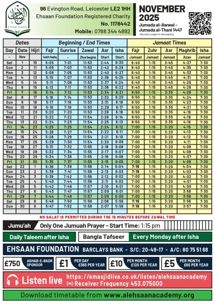 Download November Salah Timetable